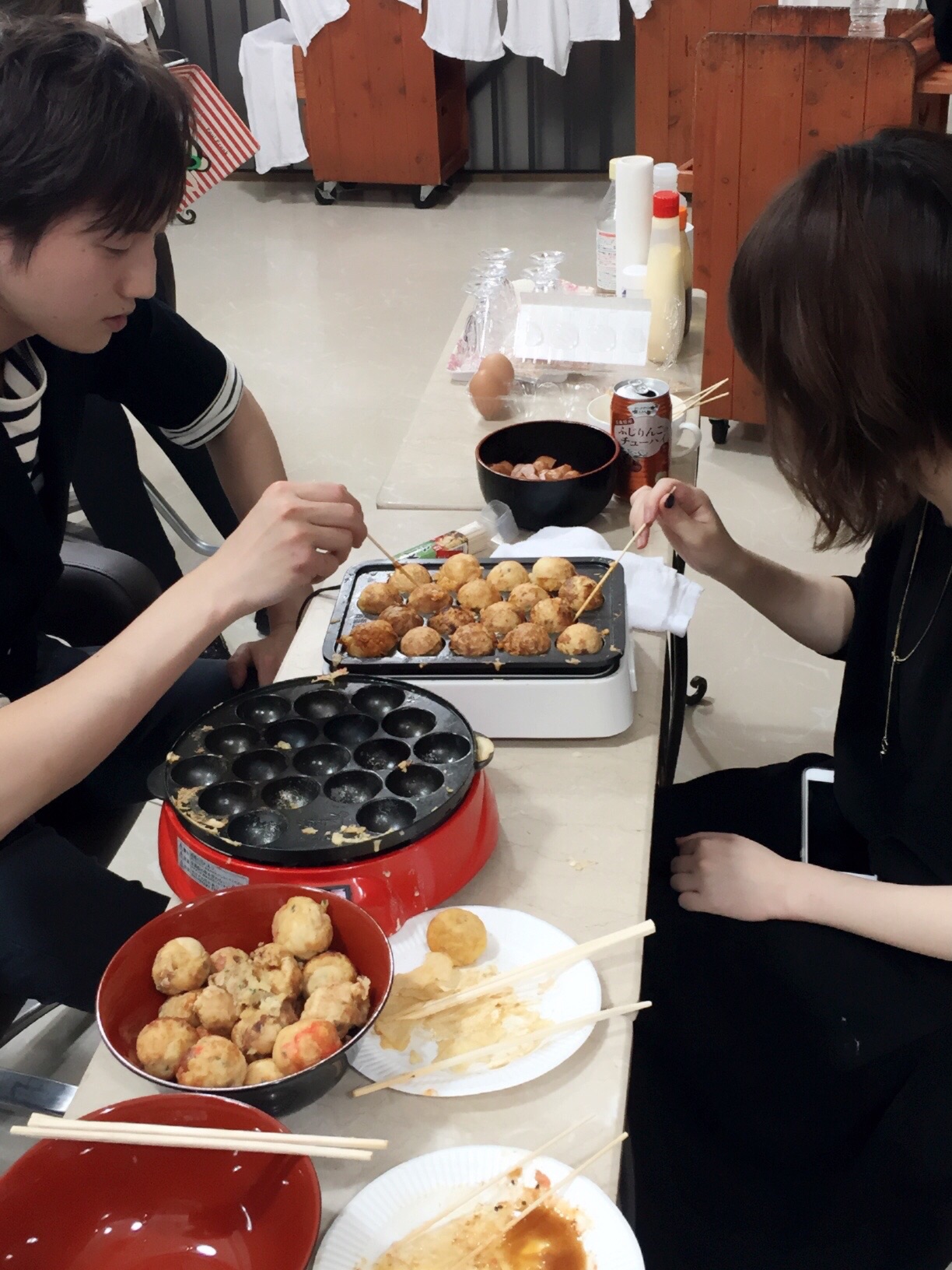 ↑↑こちらは、向き合ってひたすらたこ焼きを