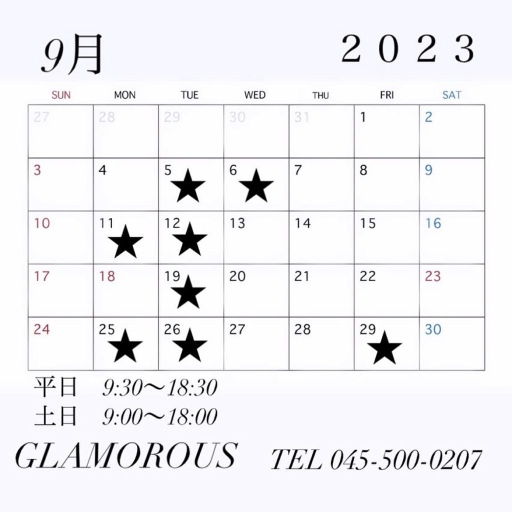 9月のGLAMOROUSのスケジュールです。